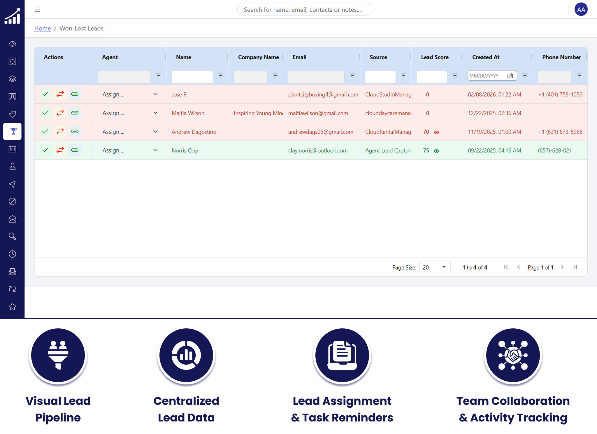 Create and assign tasks to agents tied to specific leads or general pipeline work. Track completion so nothing slips through and accountability stays clear.
